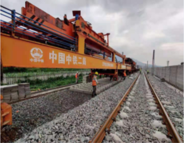 改造后的智能化鋪軌機組集輪胎、輪軌和履帶走行于一體,采用國內(nèi)首創(chuàng)的群枕式步進作業(yè)法,機型為長鋼軌鋪設(shè)和軌枕布設(shè)一體機。鋪軌機組由長鋼軌拖軌牽引車、主機、輔機、枕軌運輸車組、軌枕搬運車、動力液壓系統(tǒng)、電氣控制系統(tǒng)、智能導向系統(tǒng)、施工衛(wèi)星定位系統(tǒng)、施工綜合管理系統(tǒng)等幾部分組成。充分利用了北斗高精度定位技術(shù)等前沿高新技術(shù)。該鋪軌機組同時解決了現(xiàn)有施工過程中的兩大關(guān)鍵難點問題:第一,鋪軌機組精度受工況、人工及其他干擾因素影響的問題;第二,布枕機的群枕位置相對定位精度不高的問題。2021年7月,鋪軌機組在成昆線順利施工,取得良好效果,這是北斗定位技術(shù)在軌道交通施工機械設(shè)備智能化過程中的典型成功應用,也是北斗衛(wèi)星導航系統(tǒng)定位技術(shù)科技成果轉(zhuǎn)化的新領(lǐng)域。
